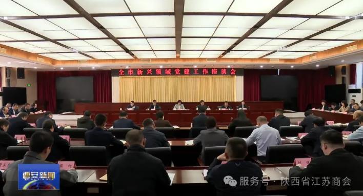 3月19日,西安市委召开全市新兴领域党建工作座谈会,传达学习中央和全省新兴领域党建工作座谈会精神,总结、交流、部署工作。表彰四星级党组织和“双强”商会。西安市委副书记、市委政法委书记李婧出席并讲话,市委常委、市委组织部部长王晓林主持。陕西省江苏商会、西安市盐城商会等14家商会被表彰为西安市“双强”商会。陕西省江苏商会会长胡德林,党支部书记、西安市盐城商会会长戴贵参加会议并上台领取奖牌。