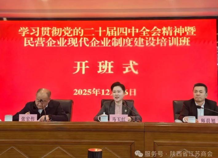 12月15日至17日,陕西省工商联在省委党校(陕西行政学院)举办学习贯彻党的二十届四中全会精神暨民营企业现代企业制度建设培训班。全国人大代表,省工商联主席、省总商会会长马玉红出席开班式并讲话,省委党校副校长师晨旭作开班致辞。开班式上,举办了省工商联(总商会)法律专家库成立仪式,省工商联党组成员、副主席张宏伟主持会议。各市工商联法律工作负责同志,省工商联执委企业、直属商会代表,各市工商联执委企业、直属商会代表等共80余人参加培训。陕西省江苏商会理事仲玉华参加培训。